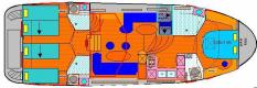 - Layout of the boat - cabins: outside steering position