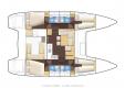 Lagoon 400 S2 equipment- Interior equipment: gas hob, oven, electric refrigerator, freezer, sink, cockpit table, coffee maker, dishes, towels, bedclothes