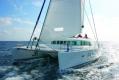 Lagoon 49.2 - Description: Charter possibilities: week charterThe saloon on the Lagoon 500 is large and offers panoramic view. Following up on their successful Lagoon 440 catamaran, the Peteghem-Prevost design team has created the new Lagoon 500 that will be available with five cabins in charter version. The main saloon, located on the bridgedeck between the hulls, has a center table that is large enough to seat 10 in comfort. A good-size galley to port boasts a large oven and grill, a refrigerator, and freezer, plus a dishwasher and additional freezer and refrigerator space. The nav station on the starboard side of the main saloon has a full set of steering and engine controls as well as ample space for charts and electronics.