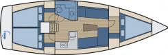 - Sails: one mast, roller-furling mainsail, roller-furling genoa