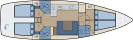 - Sails: roller-furling mainsail, roller-furling genoa
