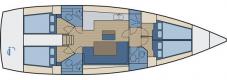- Sails: one mast, fully battened main, roller-furling genoa