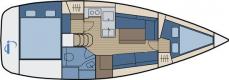 - Sails: one mast, roller-furling mainsail, roller-furling genoa