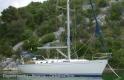 - Deck equipment: bimini top, white hull, bathing ladder, bathing platform, sprayhood, pulpit, pushpit, radar arch, gangway, deck shower hot/cold, fenders, dinghy with motor