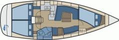 Elan 384 Impression equipment- Safety: life raft, life jackets, life ring, emergency tiller, fog horn, radar reflector, first-aid kit, life belts, distress signals, flashlight