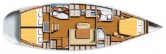 - Technical equipment: stern thruster, watermaker, electric bilge pump, manual bilge pump, electric bow anchor windlass, shore supply 220V, warm water system, inverter, position lights, anchor, anchor chain, second anchor, tool kit