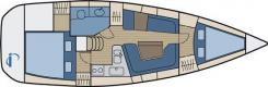 - Sails: one mast, roller-furling mainsail, roller-furling genoa