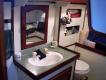 - A sliding glass door leads from the cockpit into a central saloon. The saloon features a large U: shaped settee around a dining table. Down to starboard is a spacious galley with ample storage and counter space. Forward is the owner's cabin with a queen berth. Aft of the galley is guest cabin with double berth. A VIP cabin with another queen berth is in the port hull. Forward of the VIP cabin is the nav station and storage. A large head and shower occupies the forward end of the port hull.