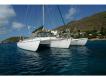 - • Exterior: Two factory installed Float Hatches in the amas, Lifting Eyes, large SS Cleats on bow and stern, Bow Pulpit, Boarding Ladder, Sunrise Bow and Wing Nets (grey), Front Solar Hatch Venting, Bimini, Tiller Extension, Tiller Cover, Fenders