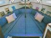 - The hull is a water cut, inside-outside, welded Cartel Aluminum. Hull color dark Blue, deck covered with white anti: slip protection on original aluminum. Cockpit trimmed by antireflection white color on the side walls and teak wood inside the cockpit walking and seating areas laid with black caulking. The stern design incorporates a bathing platform trimmed with teak slats and teak slats stainless steel steps and handle for access from the stern deck.