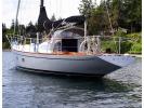 - As you enter the cockpit area, you will find comfortable seating on both sides, and a sun: blocking custom hard bimini, and removable side curtains. The protected helm is well situated to the port side of the companionway which leads to the main cabin, where the accommodation spaces are attractively finished with varnished Alaska yellow cedar hull surfaces and wood trim throughout. The overhead and bulkheads are coated with polyurethane paint.
