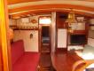 - As you enter the cockpit area, you will find comfortable seating on both sides, and a sun: blocking custom hard bimini, and removable side curtains. The protected helm is well situated to the port side of the companionway which leads to the main cabin, where the accommodation spaces are attractively finished with varnished Alaska yellow cedar hull surfaces and wood trim throughout. The overhead and bulkheads are coated with polyurethane paint.
