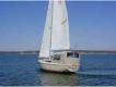 Hunter Hunter 33 description- I re: designed the rig as a balanced lug on wooden spars with an aluminum mast. The sail was professionally made by Andy Soper of Kingston, Ontario, and has two sets of reefing points set up with jiffy reefing. She has a nice downhaul system specially designed to facilitate tensioning the rig and making adjustments from the helmsman's position while underway. Her centerboard is galvanized steel (weighs about 100 LBS), and is easily lifted with an attractive custom winch mounted on the case. Removable wooden outboard bracket which is mounted on the port quarter.