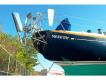 - In her main cabin, the bulkhead: mounted table swings up and out of the way when not in use. She is a standout with generous use of teak trim on deck.