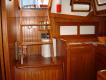 - Walk thru transom w/swim ladder. Forward and aft cabins. The main cabin has a fridge, Galley with gimballed 4: burner propane stove and oven, SS sink with new Frigoboat fridge. Chart table. A separate “Head” with vanity and shower is off the main cabin. Main cabin with fixed table and rum locker. NAV center with chart table, electronic panel. Queen sized aft berth.